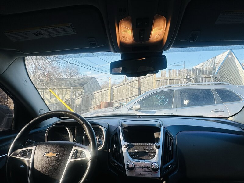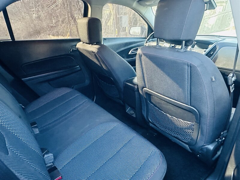 Bright and ready: this 2015 Chevrolet Equinox LT in Tungsten Metallic with a Jet Black interior is powered by a peppy 2.4L I4 (182 hp, 172 ft-lbs) and returns an efficient 20 MPG city / 29 MPG highway — and it has a clean CARFAX. Factory-equipped for everyday comfort and convenience with air conditioning, cloth Jet Black seating, power windows and door locks, remote keyless entry, cruise control and a tilt/telescoping steering wheel with steering-wheel-mounted audio and phone controls. Entertainment and connectivity include AM/FM with auxiliary and USB inputs and a 6-speaker sound system; safety and drivability come from the 6-speed automatic transmission, ABS, traction/stability control, full airbag protection, tire pressure monitoring and a 60/40 split-folding rear seat for flexible cargo space.